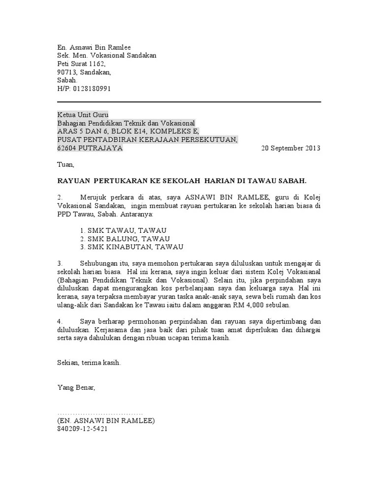 Surat rasmi permohonan, surat rasmi permohonan cuti, surat rasmi permohonan derma, surat rasmi permohonan . Penubuhan dan pengurusan kelab, persatuan, unit beruniform. Surat rasmi permohonan pertukaran unit beruniform. Surat permohonan pertukaran unit beruniform pengakap, surat permohonan. Contoh surat permohonan pertukaran unit beruniform ; Contoh surat rasmi rayuan pertukaran sekolah rendah anak via .